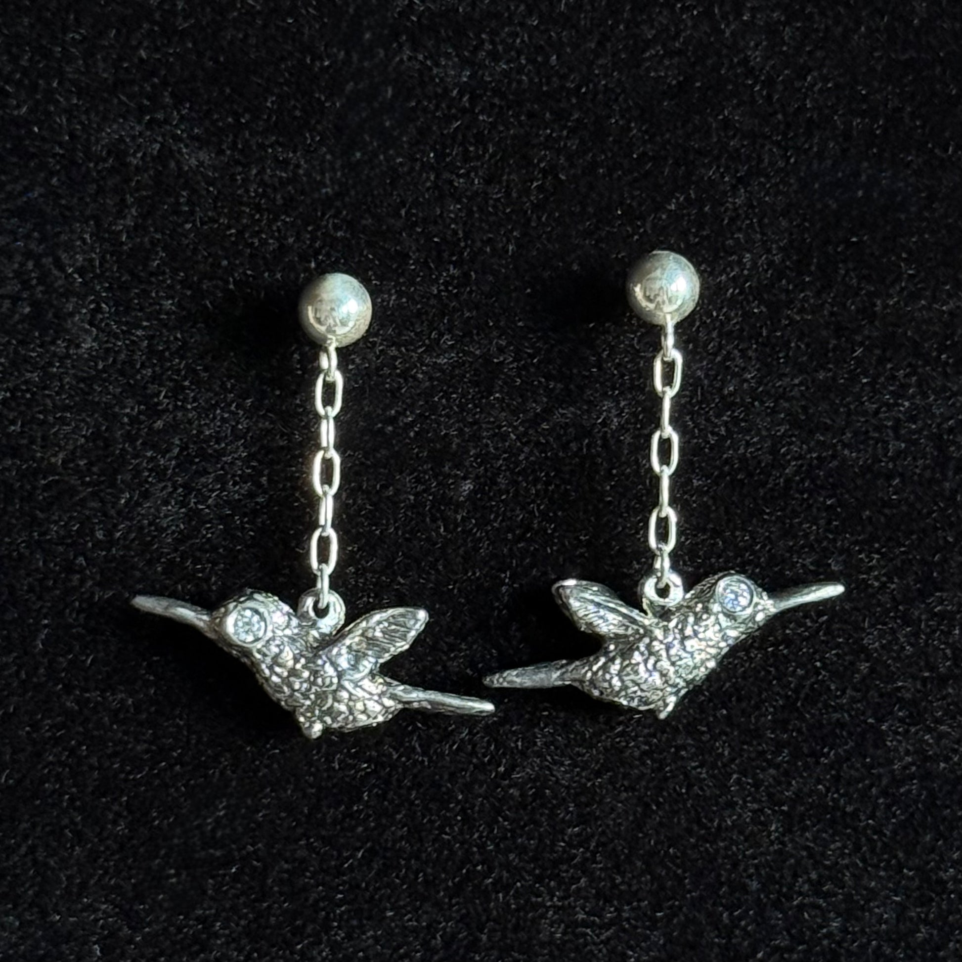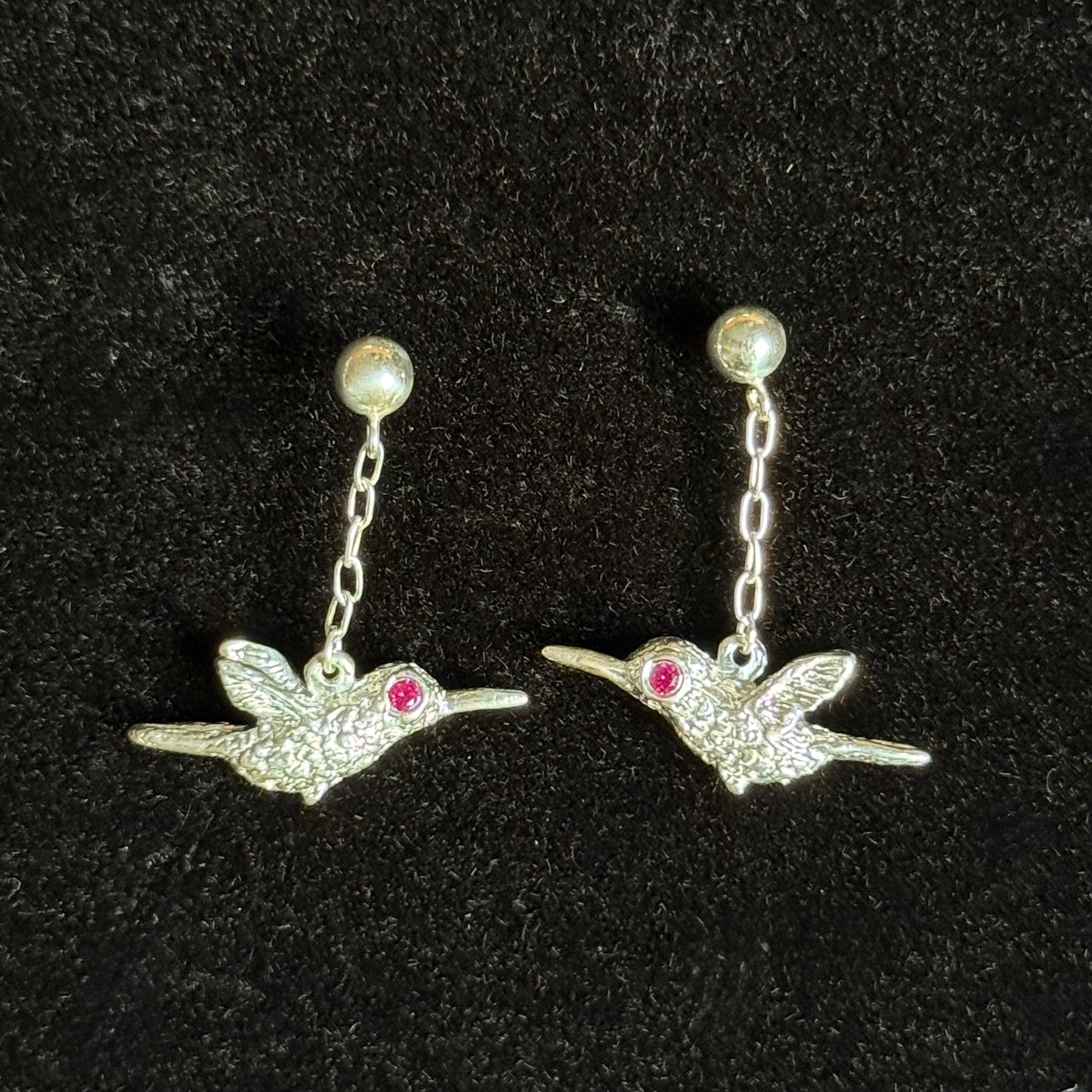 Hand-carved by the artist, this pair gives shape to the iconic hummingbird of the GATEOTW story. The dangle earring features a delicate chain and a ball back, letting the birds sway and glisten with every turn.