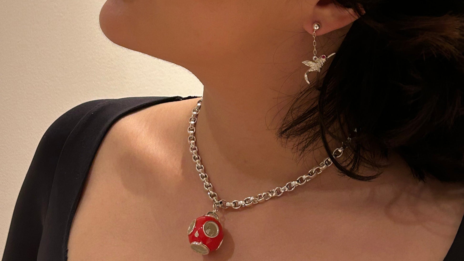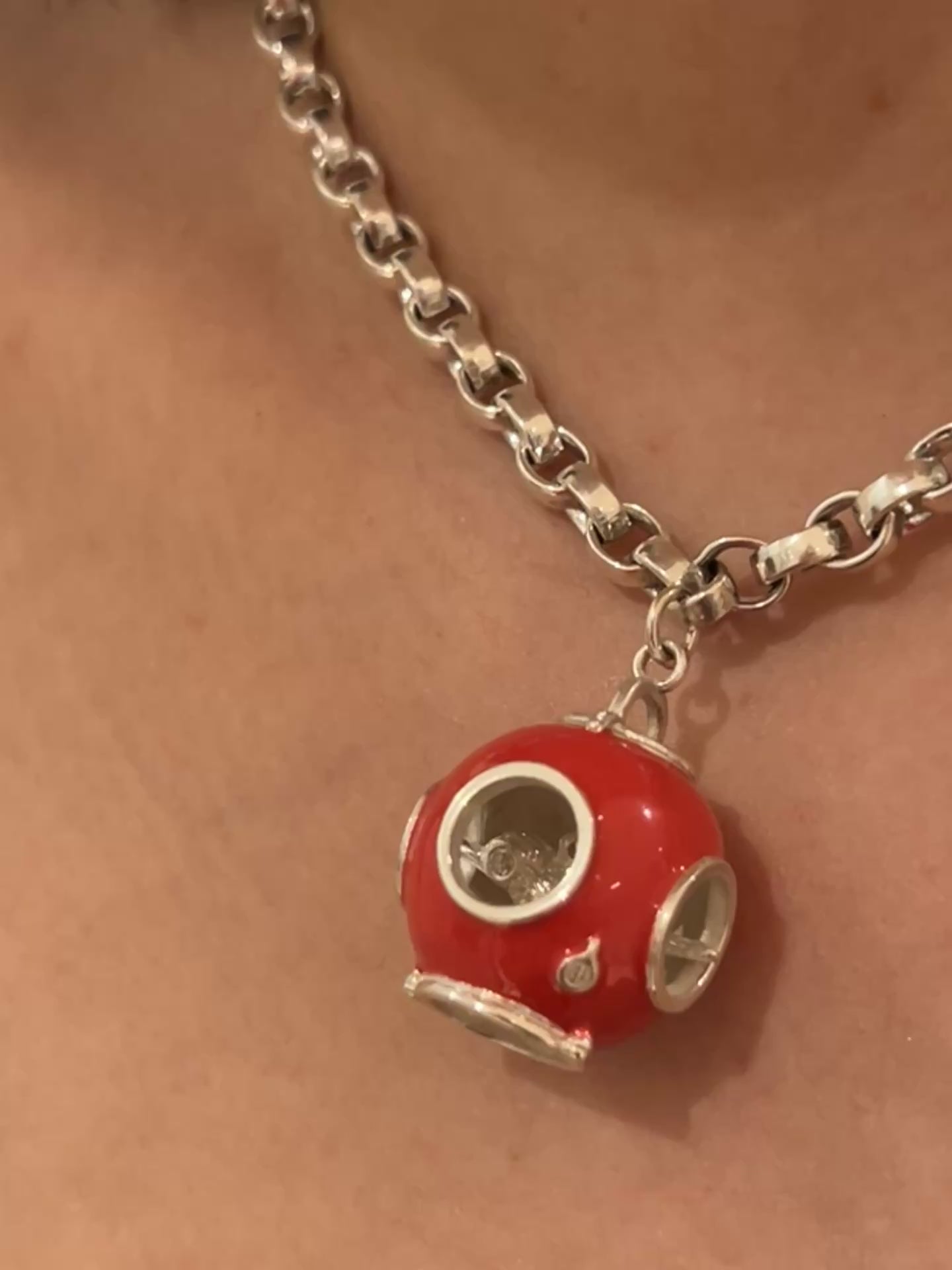The Aquanaut's Amulet is a wearable manifestation of the Girls at the End of the World. With this story, Jessica created a post-apocalyptic feminist utopia… driven by the idea that we must evolve if we wish to endure. The diver's helmet, with a hummingbird suspended inside, serves as a protective charm to the lucky wearer.